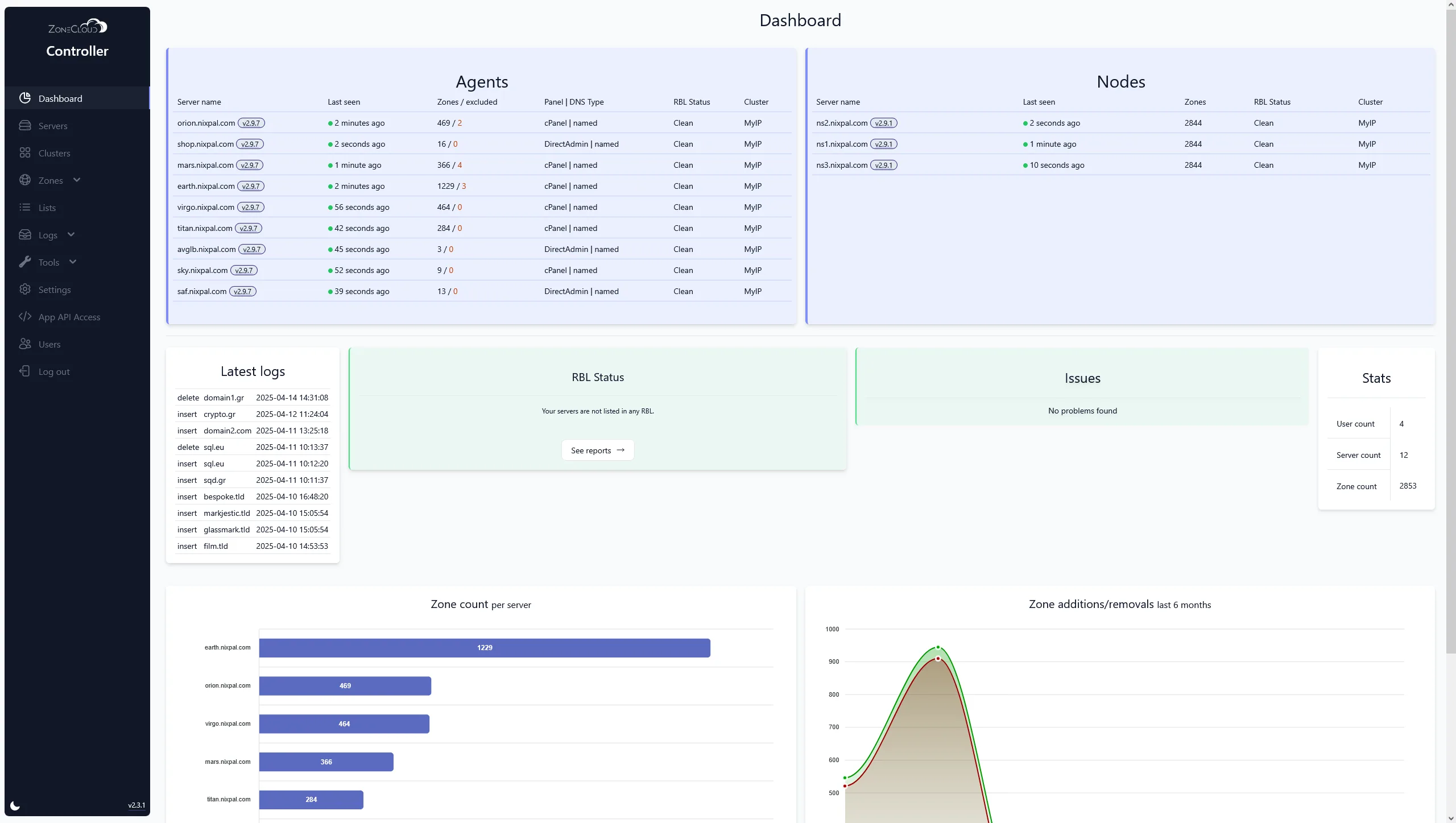 ZoneCloud’s DNS Cluster is a high-availability DNS system that automatically syncs DNS zones across multiple globally-distributed nodes. It’s designed to integrate with your hosting environment — cPanel, DirectAdmin, Virtualmin, WHMCS, and even your custom setups.